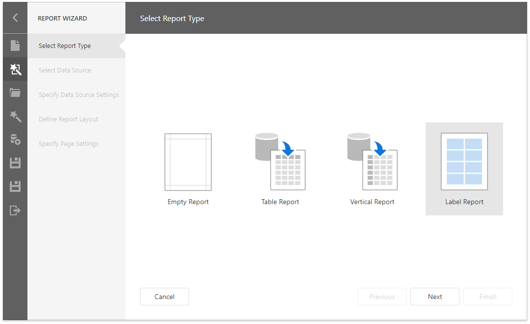 The wizard guides you through the process of creating a label report. Refer to Label Report for detailed instructions on the wizard's steps.