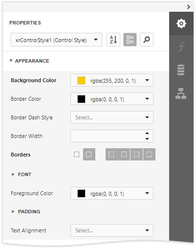 This opens the Properties panel where you can adjust the settings of the selected style. All the report elements apply the updated style immediately.