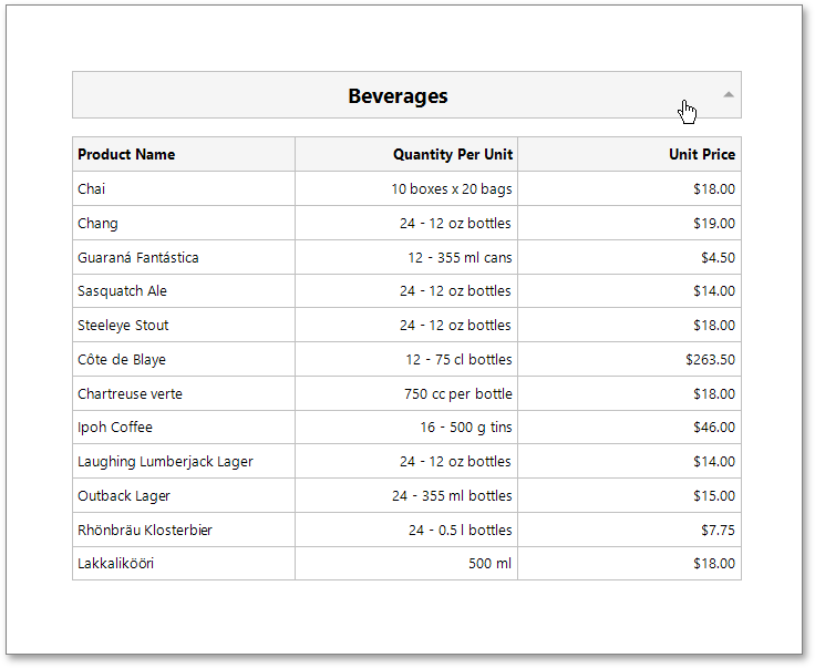 In this tutorial, we will start with the following report displaying products grouped by category names.