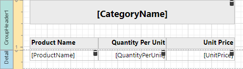 To enable sorting report groups in Print Preview, select the label displaying product category names located in the Group Header band and switch to the Properties panel.