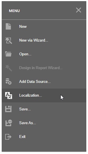 Click Localization in the Report Designer menu: