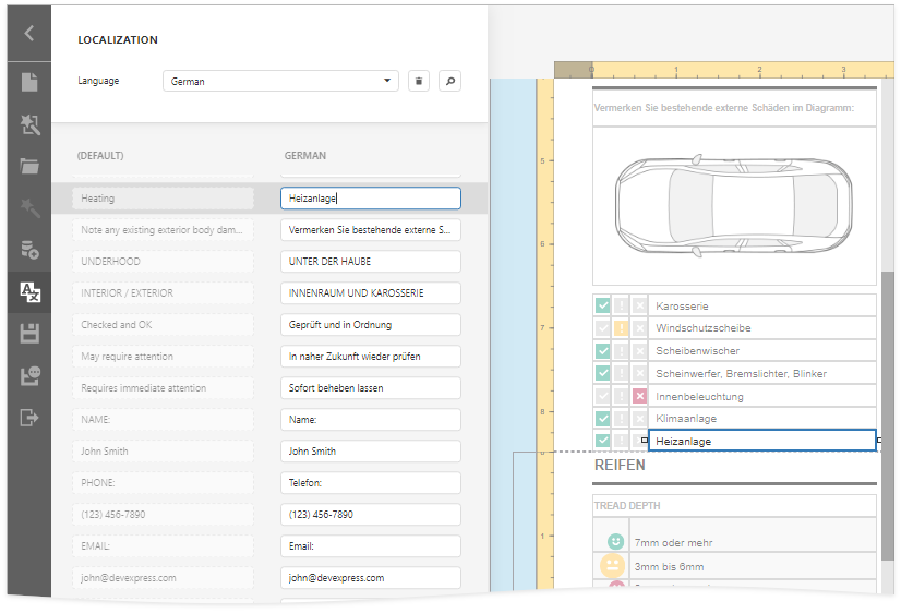 The Localization Editor allows you to change the text of the localizable textual properties for all the controls in a report.