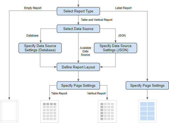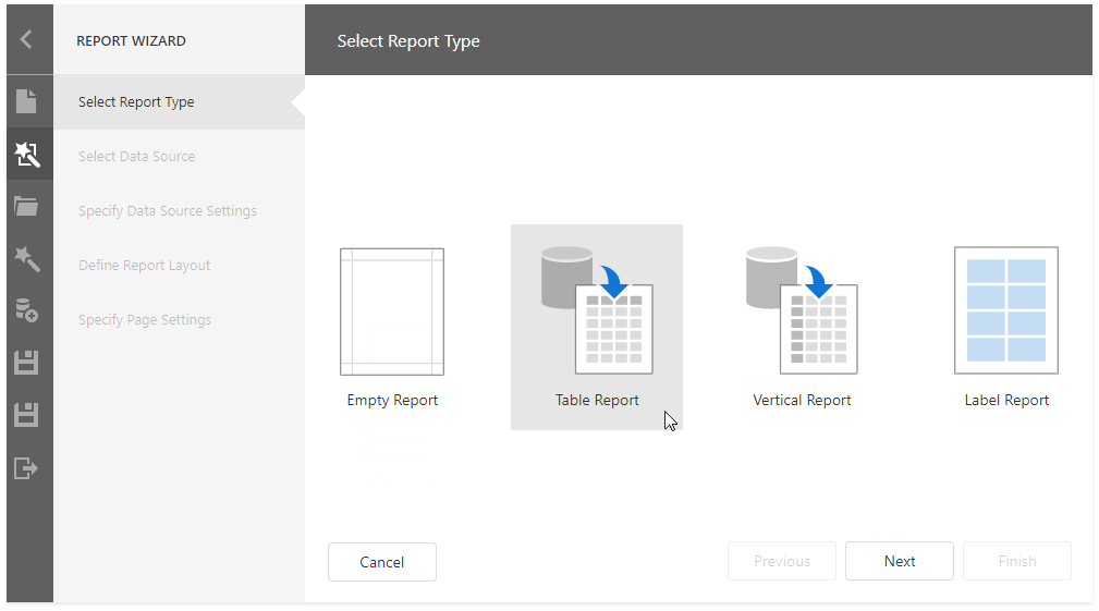 Creates a blank report that is not bound to a data source. Choose this option to design your report from scratch without the wizard.