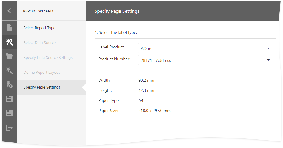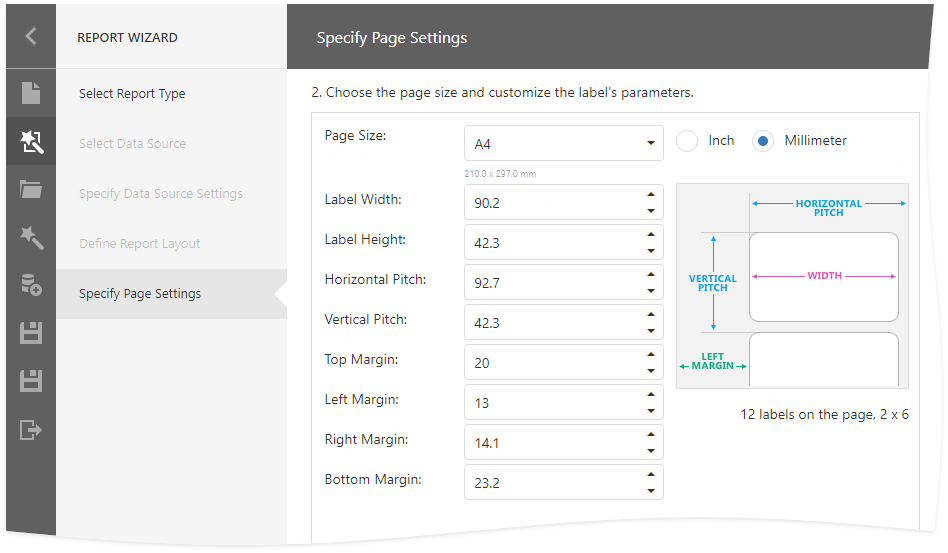 At this step, you can customize the page size and label settings.