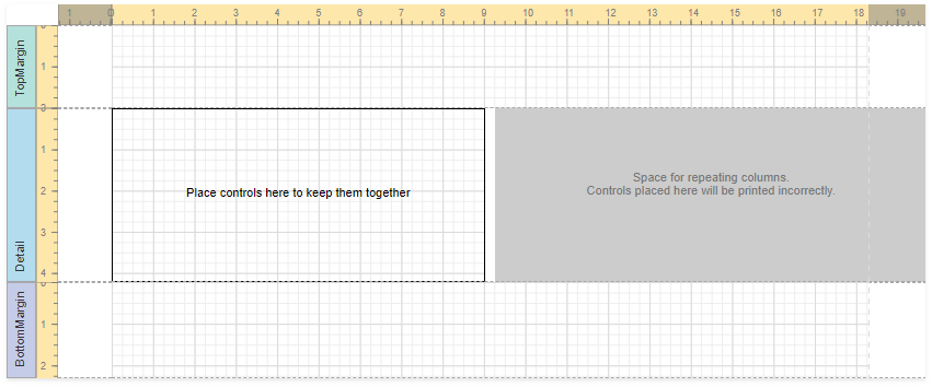 - The gray area at the right-hand side defines the space where label columns are repeated. Do not place controls in this area.