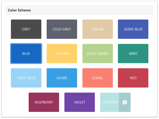 Choose the report's color scheme. The wizard creates report styles based on the selected color for the first-level report controls and applies styles with more transparent colors to controls at deeper levels.