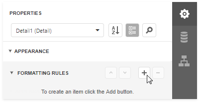 Select the report and switch to the Appearance category in the Properties panel. Select the Formatting rules node and click the plus button to add a new formatting rule.