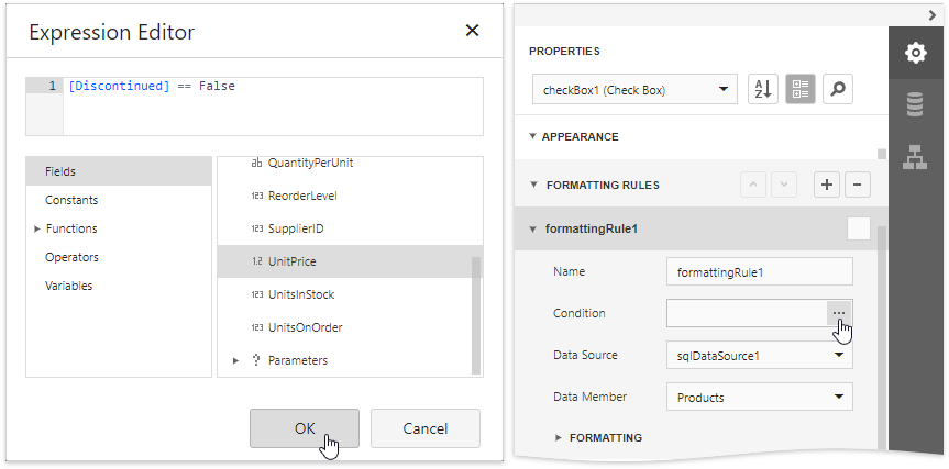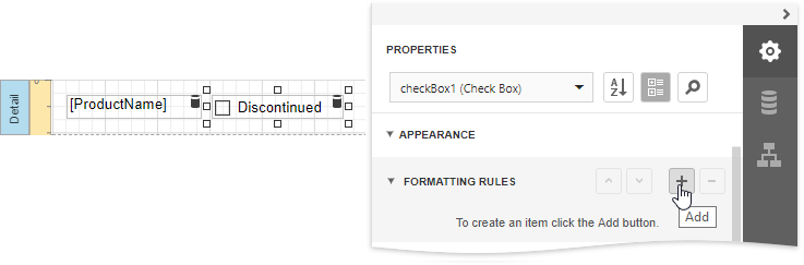Select the required control and expand the Appearance category in the Properties panel. Select the Formatting rules node and click the plus button to add a new formatting rule.