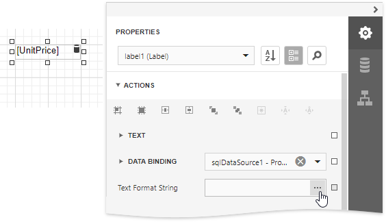 Expand the Actions category and click the Text Format String property's ellipsis button.