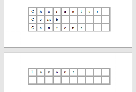 The following image illustrates a Character Comb with Cell Vertical Spacing set to 15 and Cell Horizontal Spacing set to 5.