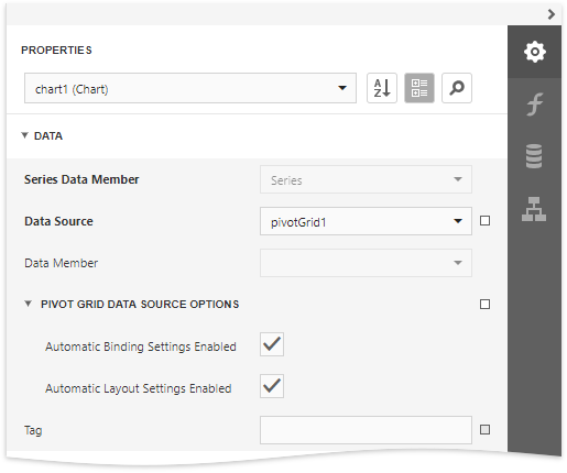 Click Run Designer to invoke the Chart Designer. Choose the Pivot Grid in the Data Source property's drop-down list.