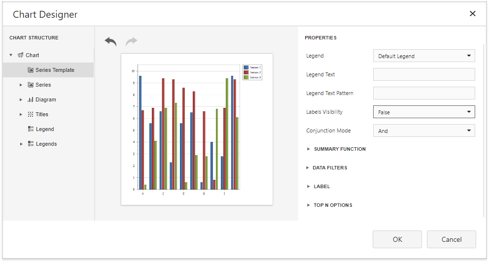 Select the Series Template node in the chart elements tree and disable the Labels Visibility check box to avoid overlapping series labels.