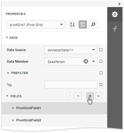 Alternatively, select the Pivot Grid, expand the Fields node in the Data category to manage the control's fields and access their properties.